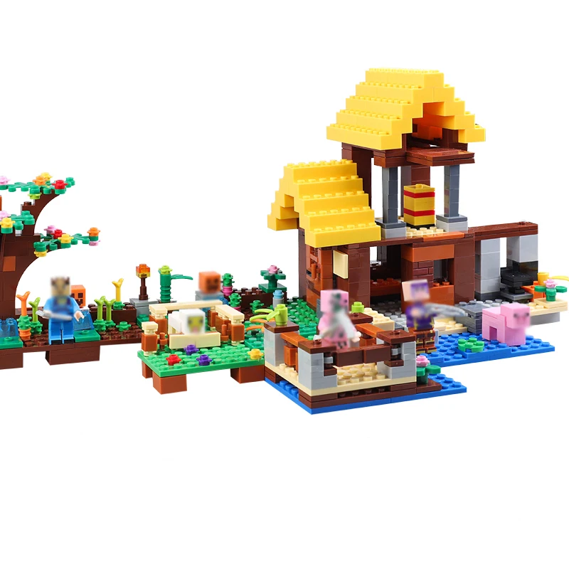 636PCS Small Building Blocks With 4PCS Mini Figure My World Farm House Small Bricks Total 2 Shapes Gift Toy For Children