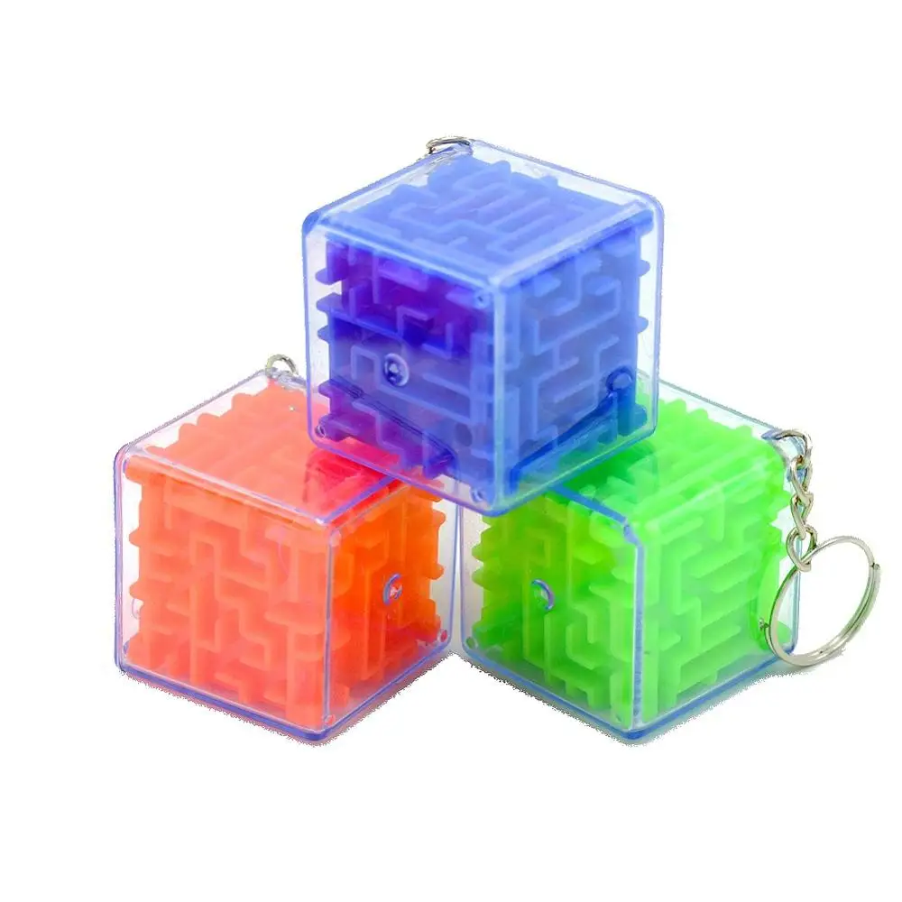 Color Children's Puzzle Game Maze Cube 3CM Keychain Three-dimensional Hexahedron Rotating Bead Maze Decompression Toy