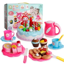 Birthday Cake מטבח מזון צעצועים קוקינה דה Juguete צעצוע ורוד כחול בנות מתנה לילדים 38-86Pcs חיתוך פירות Play DIY דימיון