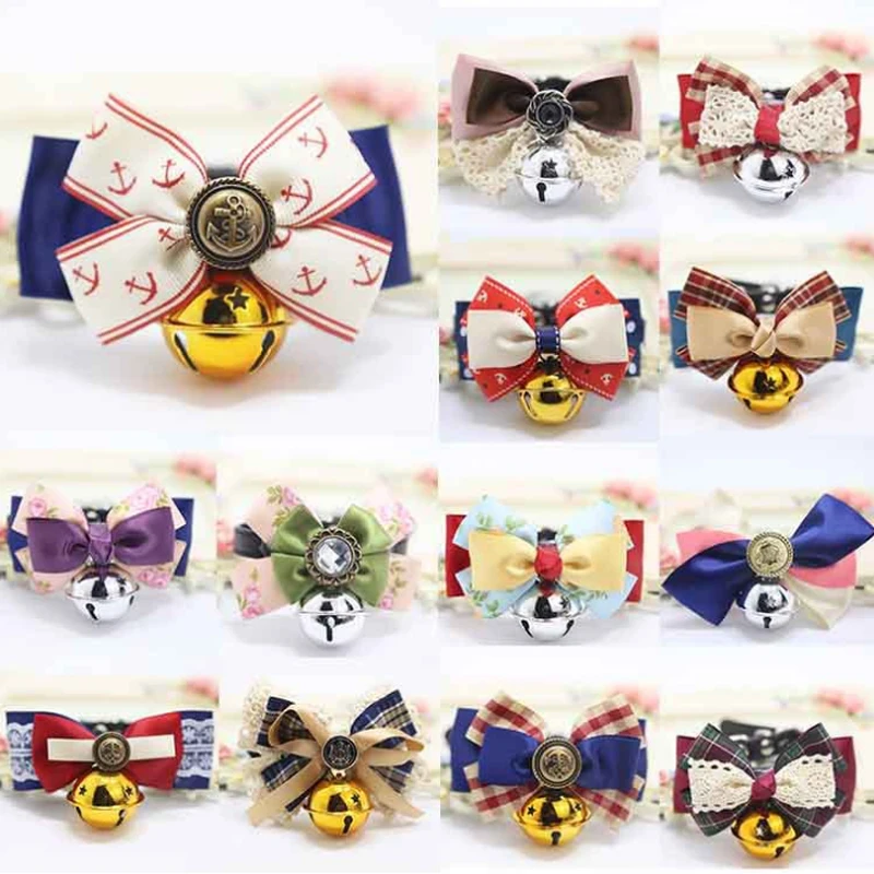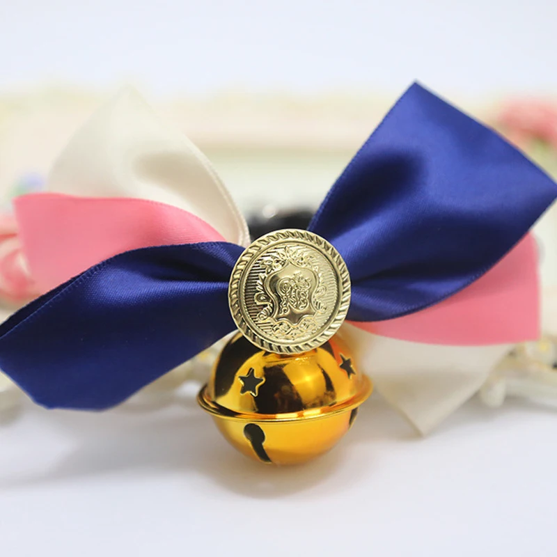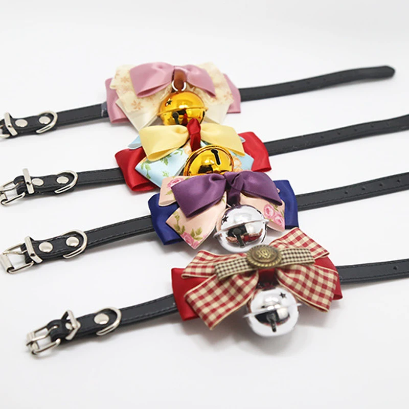1PCS Soft Suede Tie bow bell PU Leather Puppy Dog Collar Adjustable Rhinestone Cat Pet Pink Collars Suit Small Medium Pets