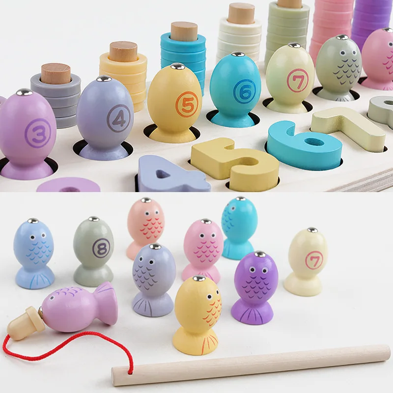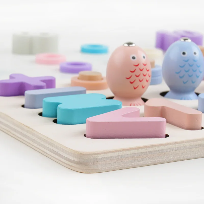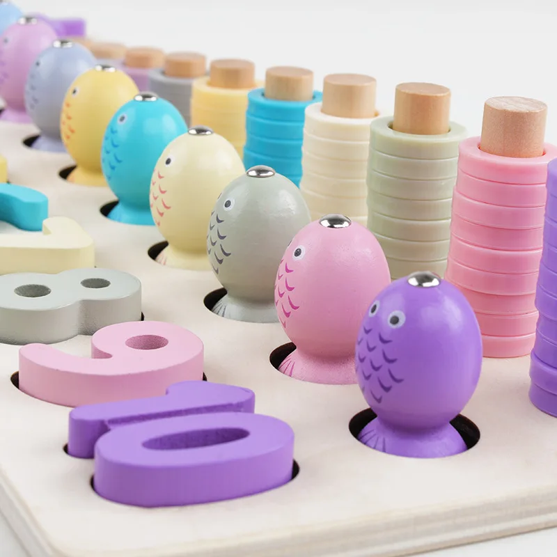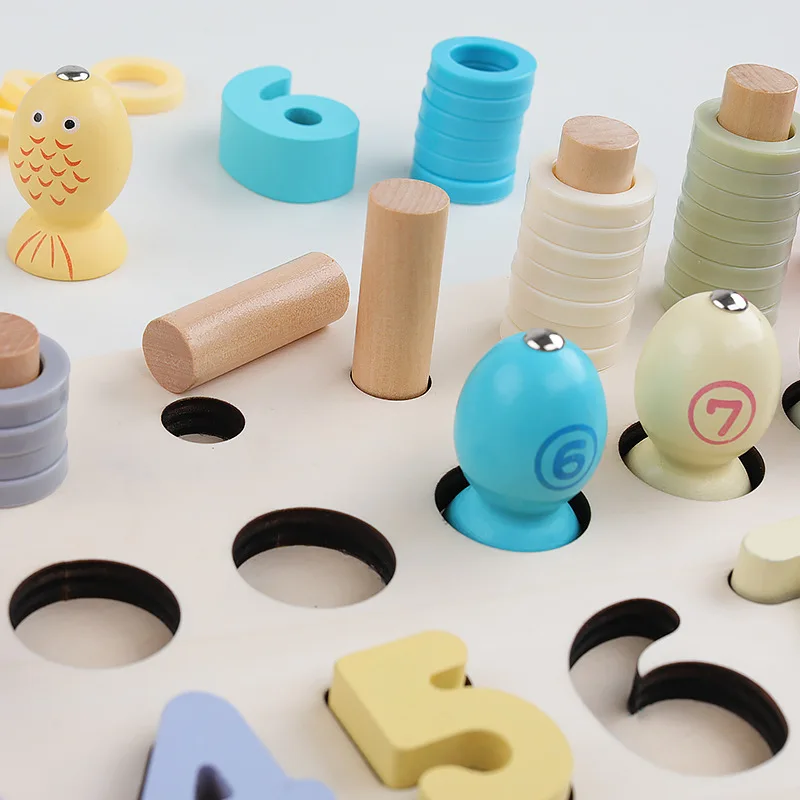 Children's Wooden Preschool Montessori Toy Counting Geometry Montessori Educational Wooden Toys Children Busy Board Math Fishing