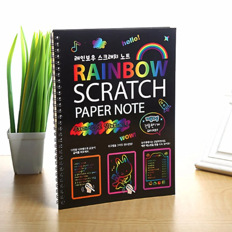 Magic Scratch Painting Color Rainbow Scratch Paper Note Book with Drawing Stick For Kids Doodle Creative Drawing Educational Toy