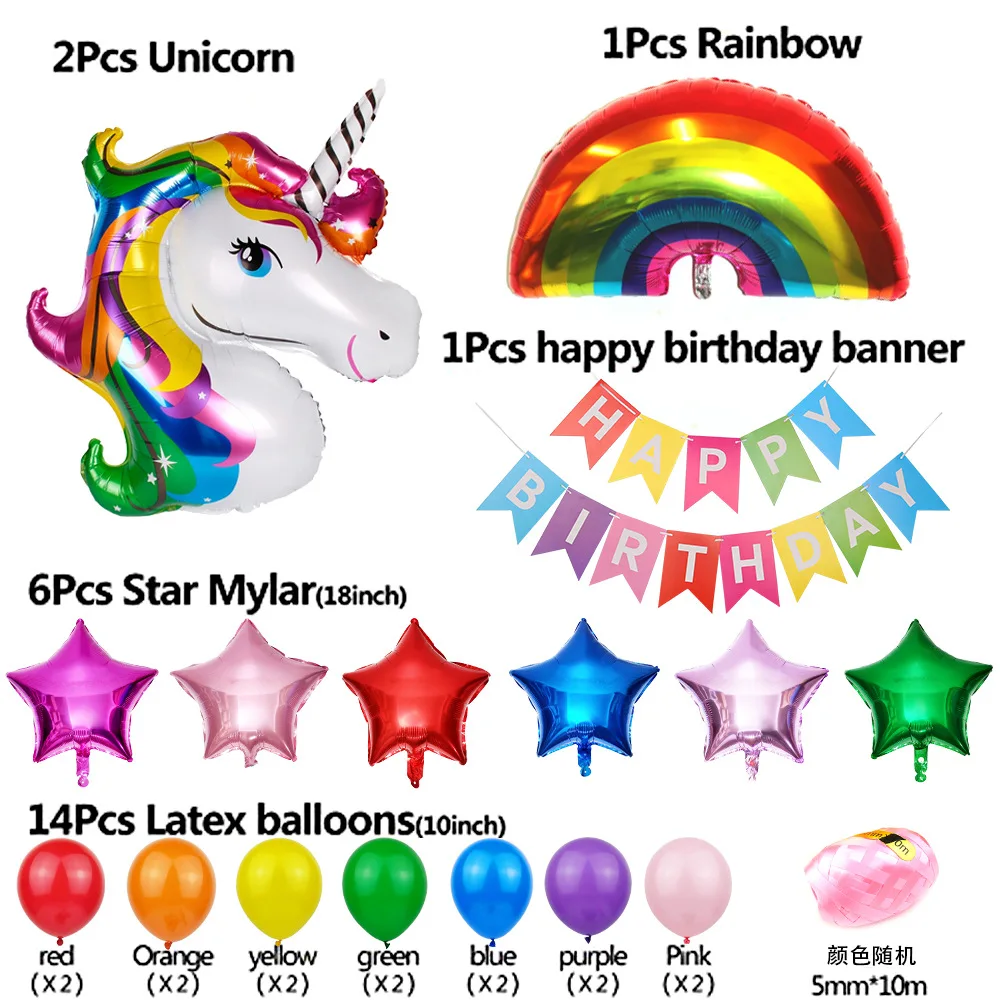 Unicorn בלון חבילת מפלגת ספקי כובע קריקטורת ספקי מסיבת יום הולדת לילד תיק קישוט Theme Unicorn