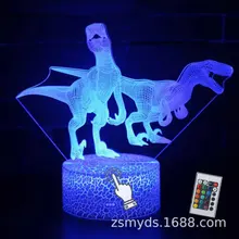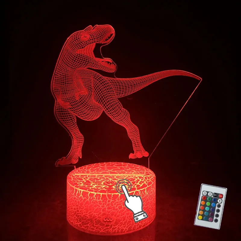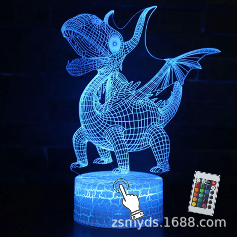 Illusion דינוזאור 7 3D Color LED שלט רחוק צעצוע Touch שינה מנורת לילה Animal Light Up זוהר בחושך צעצוע יום הולדת מתנה