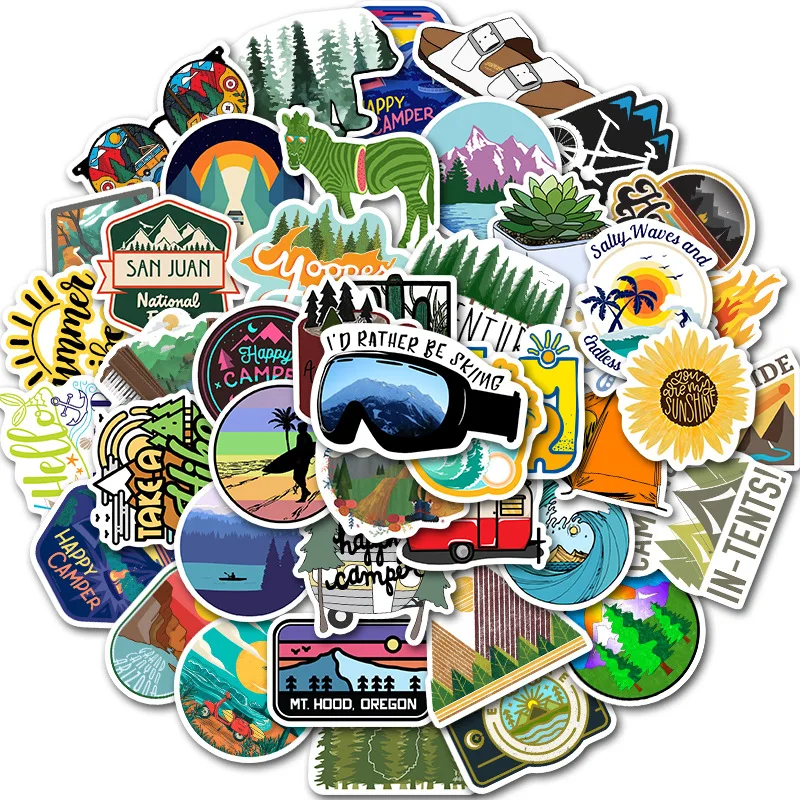 50PCS Outdoor Wild Summer Travel Stickers Suitcase Trolley Case Car Skateboard Fresh Adventure Sticker Waterproof