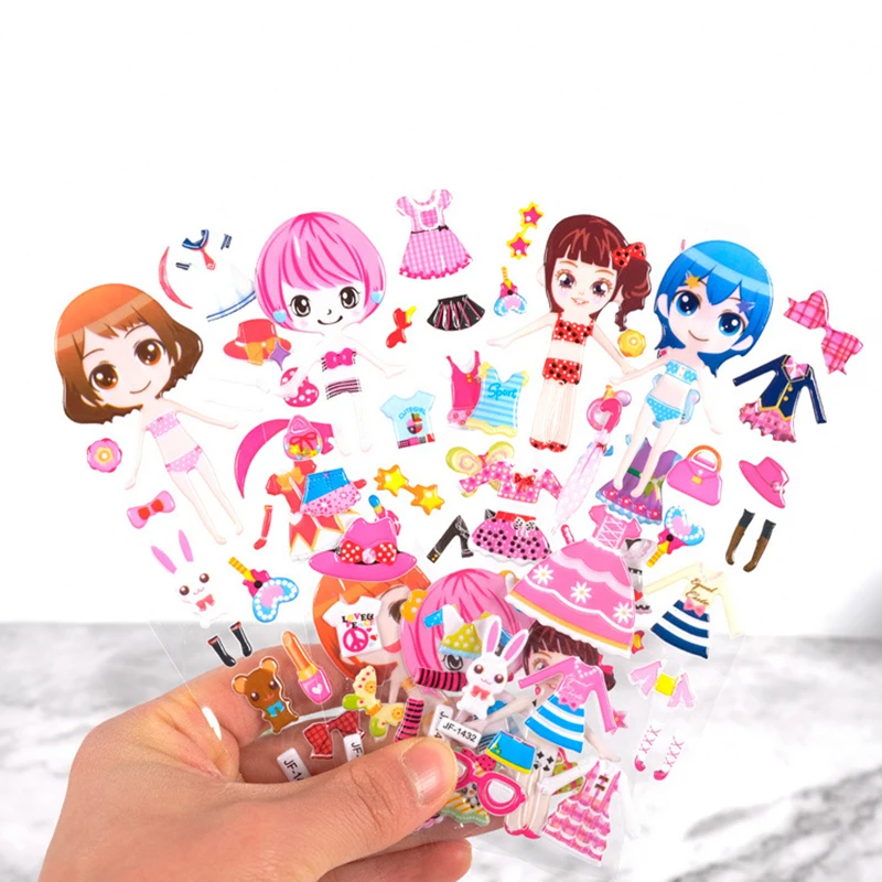 Exquisite Cartoon Anime Stickers Dinosaur Animal Girl 3D Stereo Bubble Stickers Children Reward Stickers Toys For Children