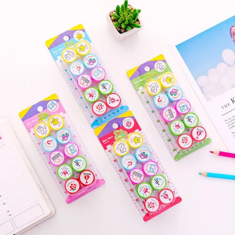 Toy seal English Comment seal Teaching aids Cartoon seal toys Awards and commentary 10PCS/Set