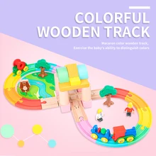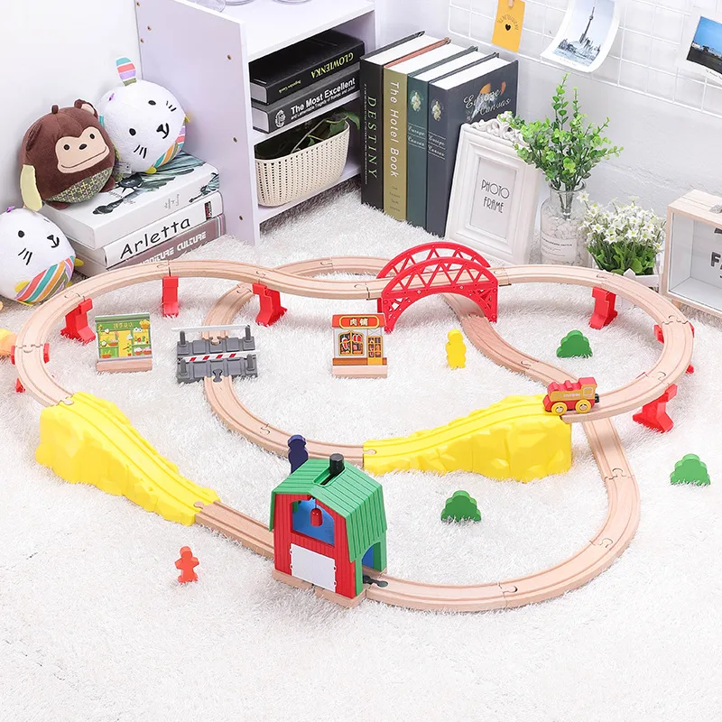 מסילת רכבת עץ עם Scene מסלול פרקט מסלול רכבת בניין בלוק מסילת רכבת סט חינוכי צעצועים מתנות צעצועים לילדים